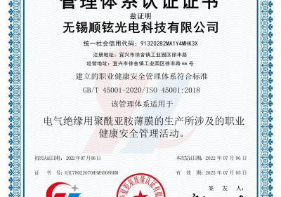 無(wú)錫順鉉光電職業(yè)健康安全管理體系認(rèn)證證書(shū)(S)